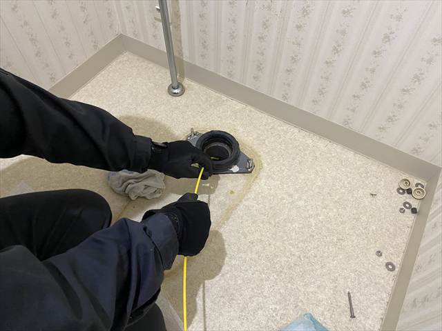 トイレが頻繁につまるため、トイレを取り外し排水管内にカメラを挿入したところ、排水管の破損を確認。