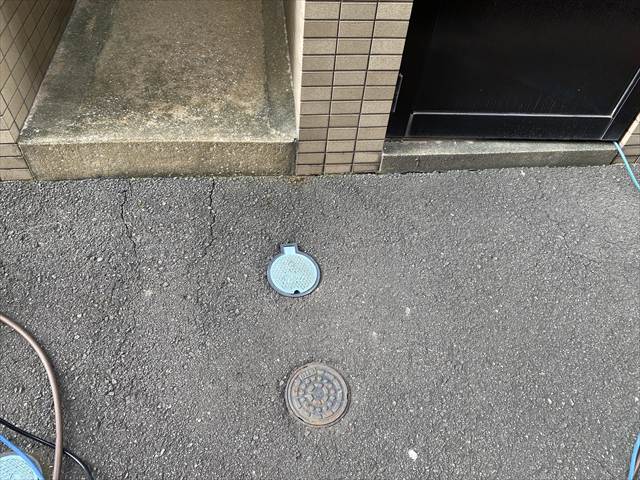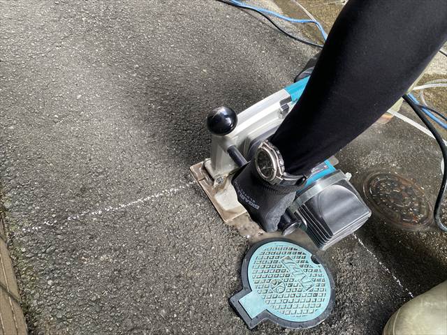 舗装下の埋設給水管の亀裂を確認し、補修いたしました。